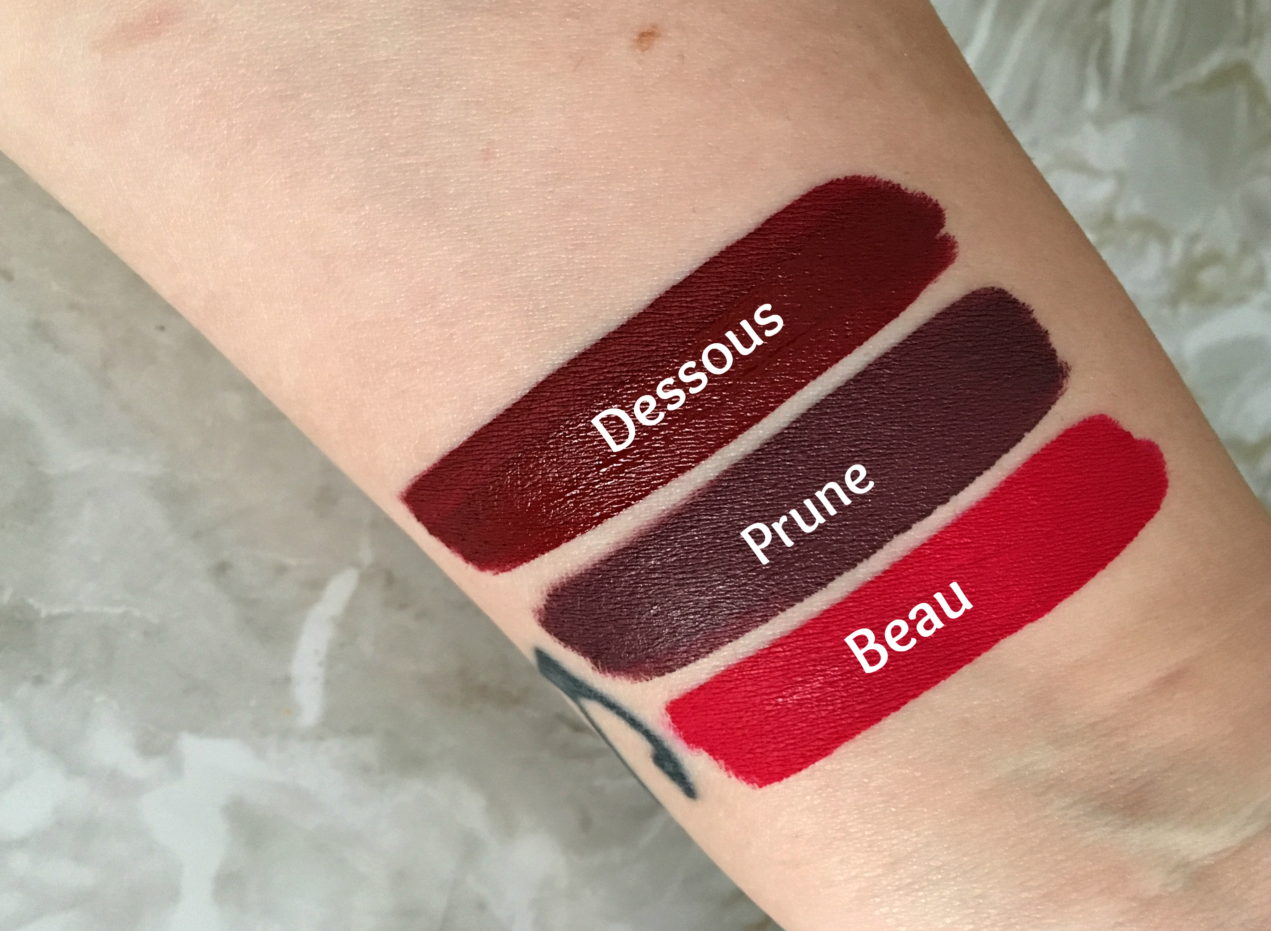 Για αρχή, να αναφέρω πως είχα την ευκαιρία να δοκιμάσω 3 αποχρώσεις, την Prune, ένα υπέροχο σκούρο μοβ, άκρως φθινοπωρινό και ταιριαστό με την εποχή, την Dessous, ένα φλογερό μπορντό και την Beau, ένα έντονο σκούρο φούξια, που αν και δεν προτιμώ συχνά τέτοιες αποχρώσεις στο μακιγιάζ μου, την αγάπησα.