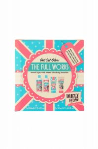 Ένα τέλειο σετάκι από την εταιρεία Dirty Works, ιδανικό για τις εξορμήσεις των εορτών, είναι ό,τι πρέπει για δώρο στα αγαπημένα σου άτομα. Περιλαμβάνει αφρόλουτρο, κρέμα σώματος, scrub σώματος και αφροντούς, στις πιο cute συσκευασίες για να τα έχεις όπου και αν πας!