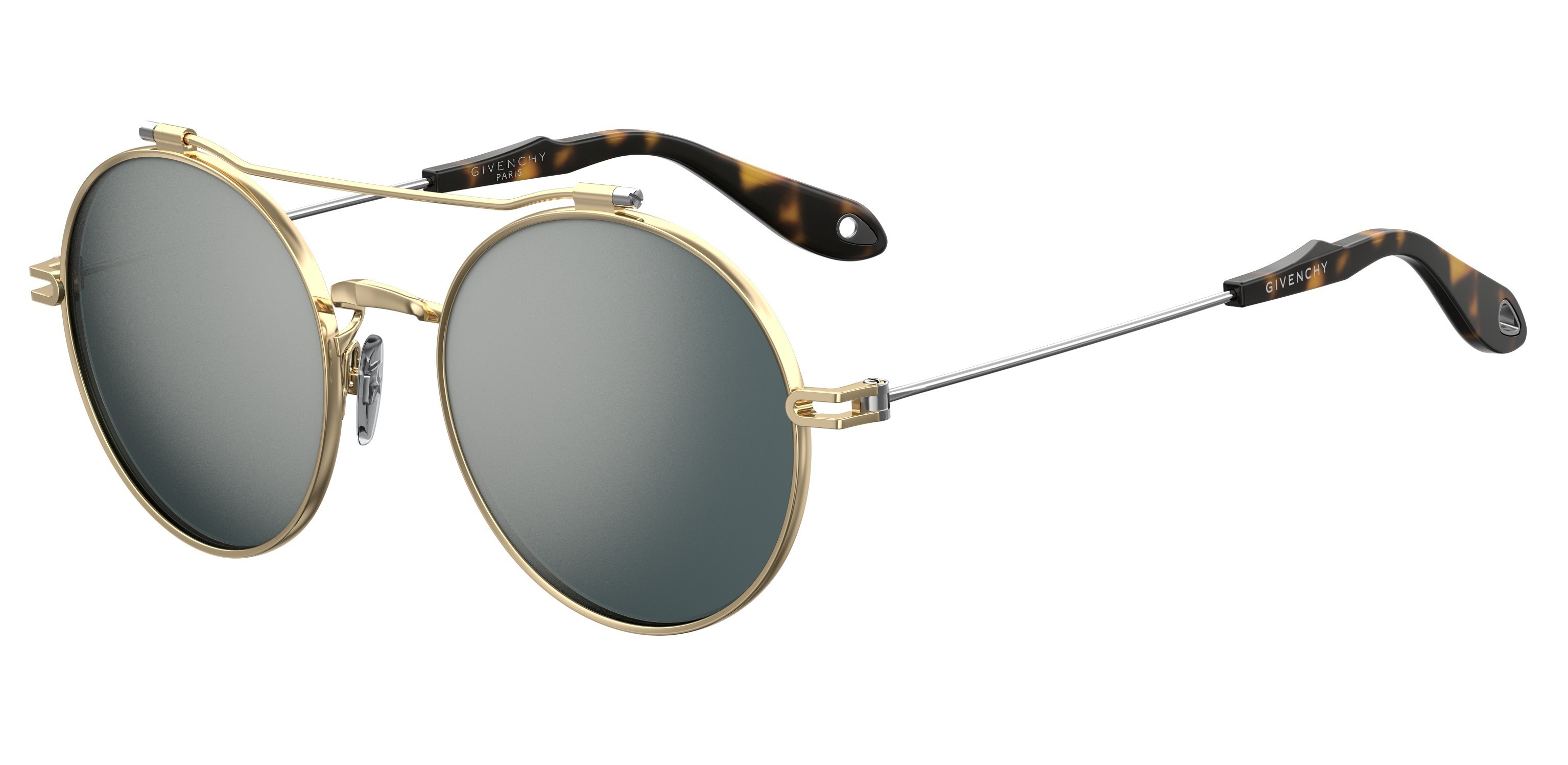 Unisex, στρογγυλά, μεταλλικά γυαλιά ηλίου που προσφέρουν μια ρετρό προσέγγιση, λόγω των επιμέρους στοιχείων τους, με βιδάκια και προφίλ πλαισίου σε χρωματική αντίθεση. Το ένα χρώμα ενισχύεται από καθρεπτέ φακούς με γραφιστικό μοτίβο, που αποτελείται από τα εμβληματικά αστέρια και το μονόγραμμα του Οίκου.
