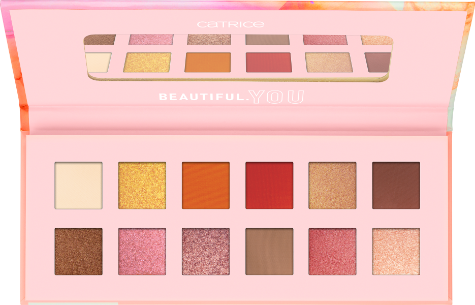 Η αναγραφόμενη φράση «Beautiful. You» πάνω στην παλέτα σκιών της CATRICE υπενθυμίζει σε όλους εσάς ότι είστε πραγματικά όμορφοι! Τα 12 απολύτως ταιριαστά μεταξύ τους χρώματα είναι ιδανικά για να εκφράσουν την ομορφιά σε όλες της τις πτυχές. Οι ανοιχτές μέχρι σκούρες, χρυσές, ροζ, κόκκινες και καφέ αποχρώσεις προσφέρουν μια μεγάλη ποικιλία συνδυασμών με διαφορετικά φινιρίσματα, χάρη στα ματ και τα λαμπερά εφέ τους. Η χάρτινη συσκευασία περιλαμβάνει επίσης ένα καθρεφτάκι.
