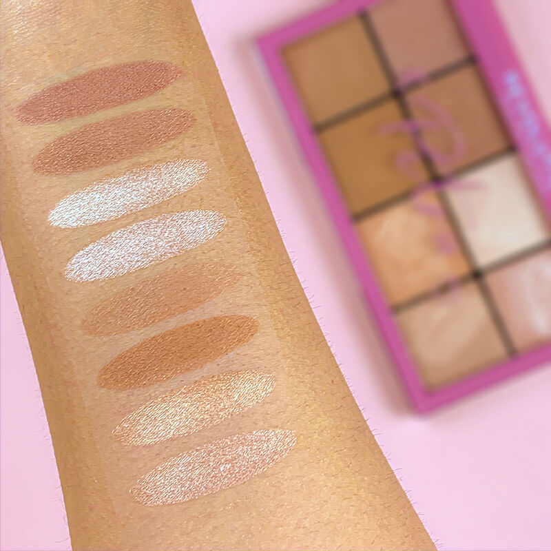 Η παλέτα έρχεται με 8 αποχρώσεις των 2g η κάθε μία, μία αρκετά καλή ποσότητα θα λέγαμε, και κλείνει μέσα της 4 αποχρώσεις για bronzing και contouring και 4 highlighters σε διαφορετικές αποχρώσεις.