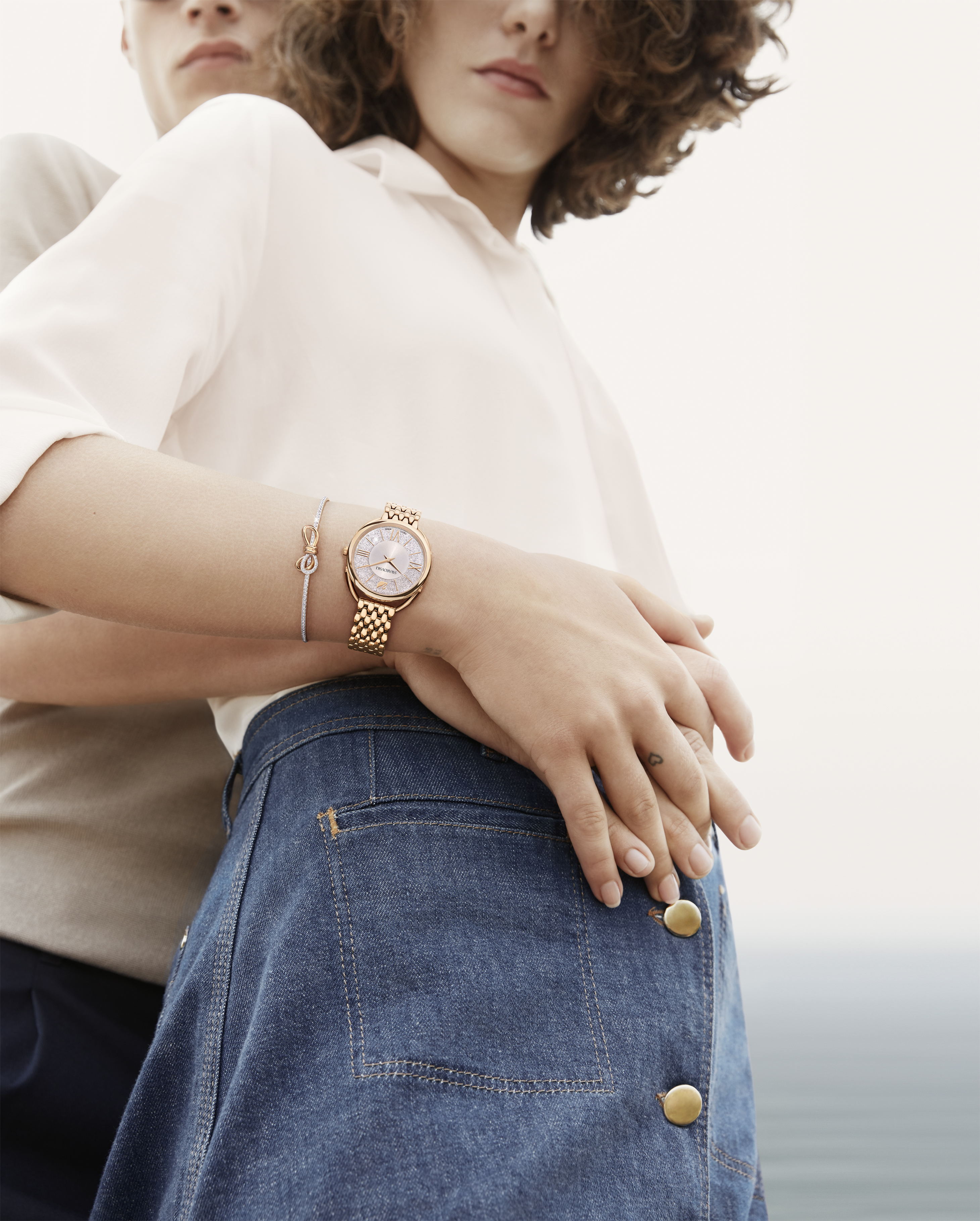 Το καντράν του ρολογιού CRYSTALLINE GLAM λάμπει χάρη στα περίπου 800 κρύσταλλα Swarovski, τα οποία σίγουρα θα φωτίσουν όχι μόνο κάθε σύνολο αλλά και κάθε διάθεση. Ακολουθήστε την τάση για πολλά κοσμήματα φορεμένα μαζί στον καρπό, προσθέτοντας στο σύνολο το λαμπερό βραχιόλι Lovely σε σχήμα καρδιάς.