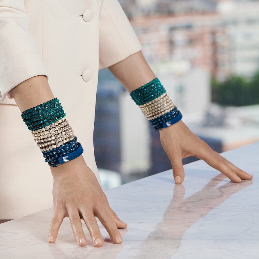 Το εμβληματικό και ιδιαίτερα δημοφιλές βραχιόλι Slake της Swarovski εξελίσσεται για τη σεζόν Φθινόπωρο/Χειμώνας 2019, για να εκπροσωπήσει τη συλλογή Swarovski Power Collection. Το διαφανές κρύσταλλο και οι αποχρώσεις Crystal Golden Shadow και Jet Hematite προσδίδουν εκλεπτυσμένο, λαμπερό δυναμισμό σε κάθε περίσταση, από το πρωί έως το βράδυ. Τα διπλά βραχιόλια σε κρυστάλλινους τόνους Crystal Silver Night, Scarlet και Montana προσθέτουν την απαραίτητη πινελιά χρώματος στις καθημερινές εμφανίσεις. Τα λαμπερά σχέδια σε έντονες αποχρώσεις Amethyst και Emerald προσδίδουν νότες χαράς και δυναμισμού ακόμα και στα πιο απλά σύνολα.