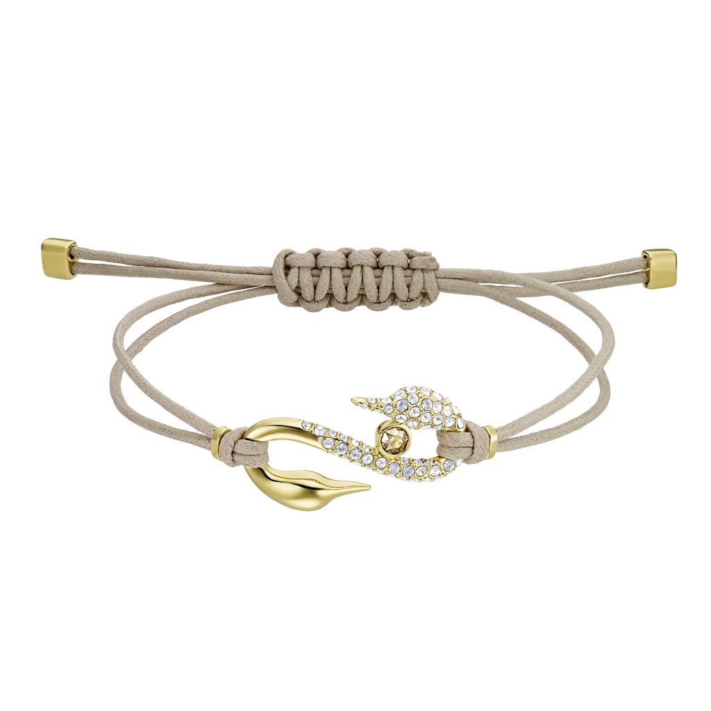Οι λεπτομέρειες από κρύσταλλα pavé της Swarovski δίνουν πνοή σε ένα σχέδιο που φέρνει στο νου το σύμβολο του κύκνου της Swarovski, ενώ το κομψό βραχιόλι από κορδόνι που αγκαλιάζει το χέρι προσθέτει μια εκλεπτυσμένη και λαμπερή τελική πινελιά.
